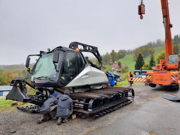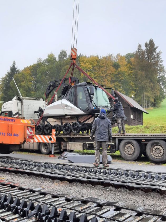 V pátek 10. října jsme si za typického podzimní počasí, déšť a zima, přivezli do skiareálu první posilu na úpravu sjezdovek. A ve čtvrtek 20. listopadu jsme naši flotilu doplnili i o druhou rolbu.