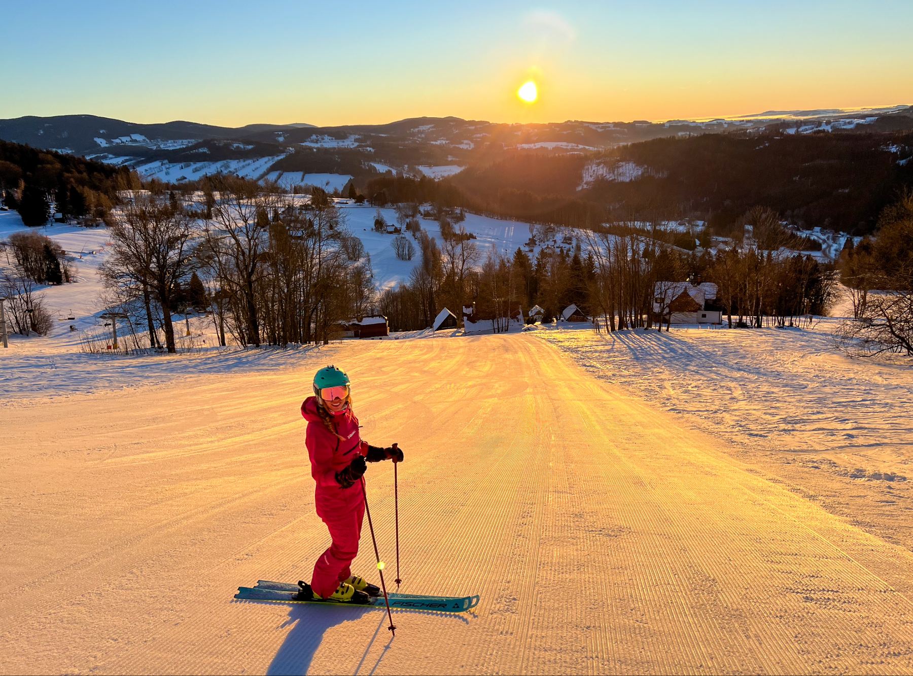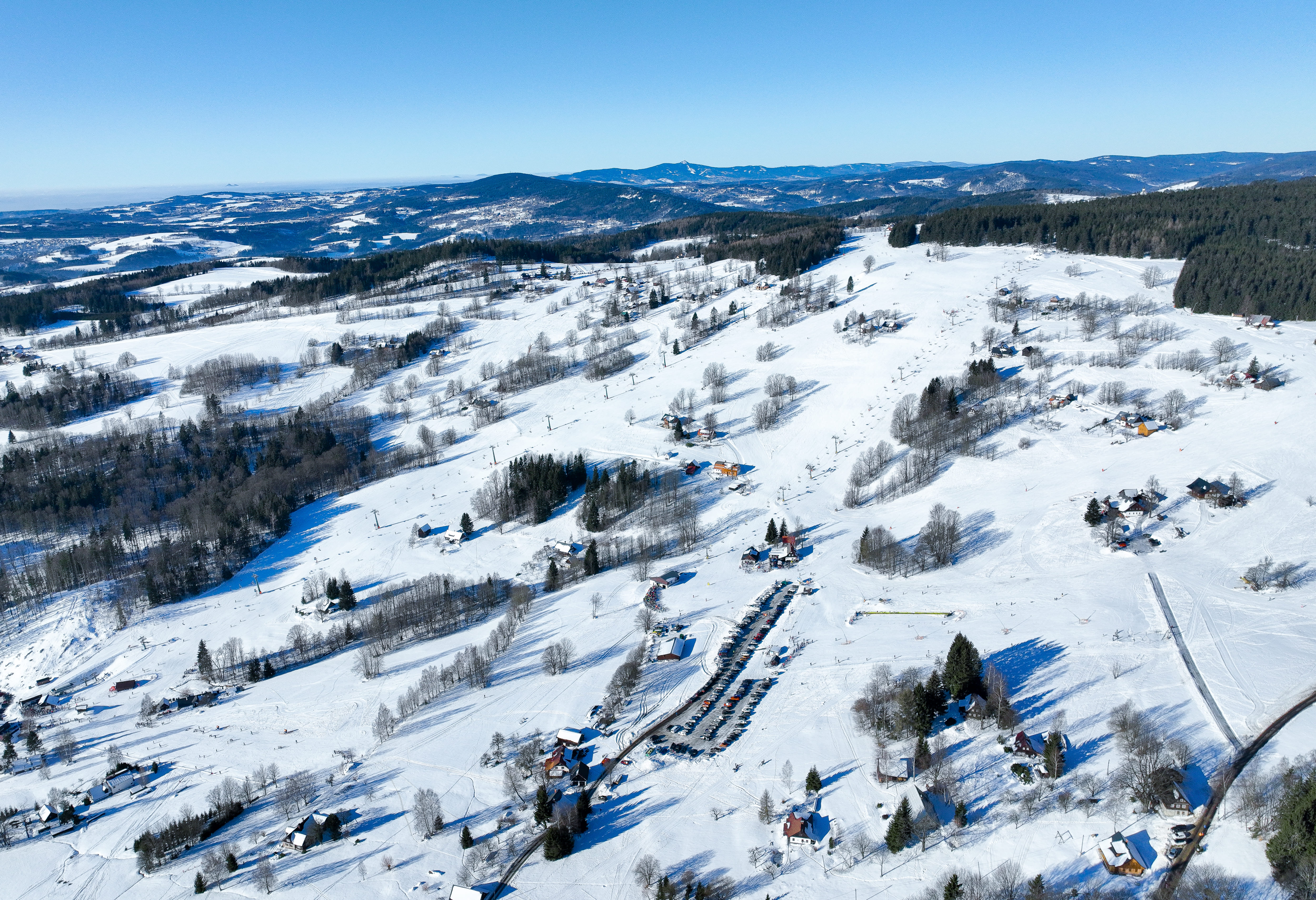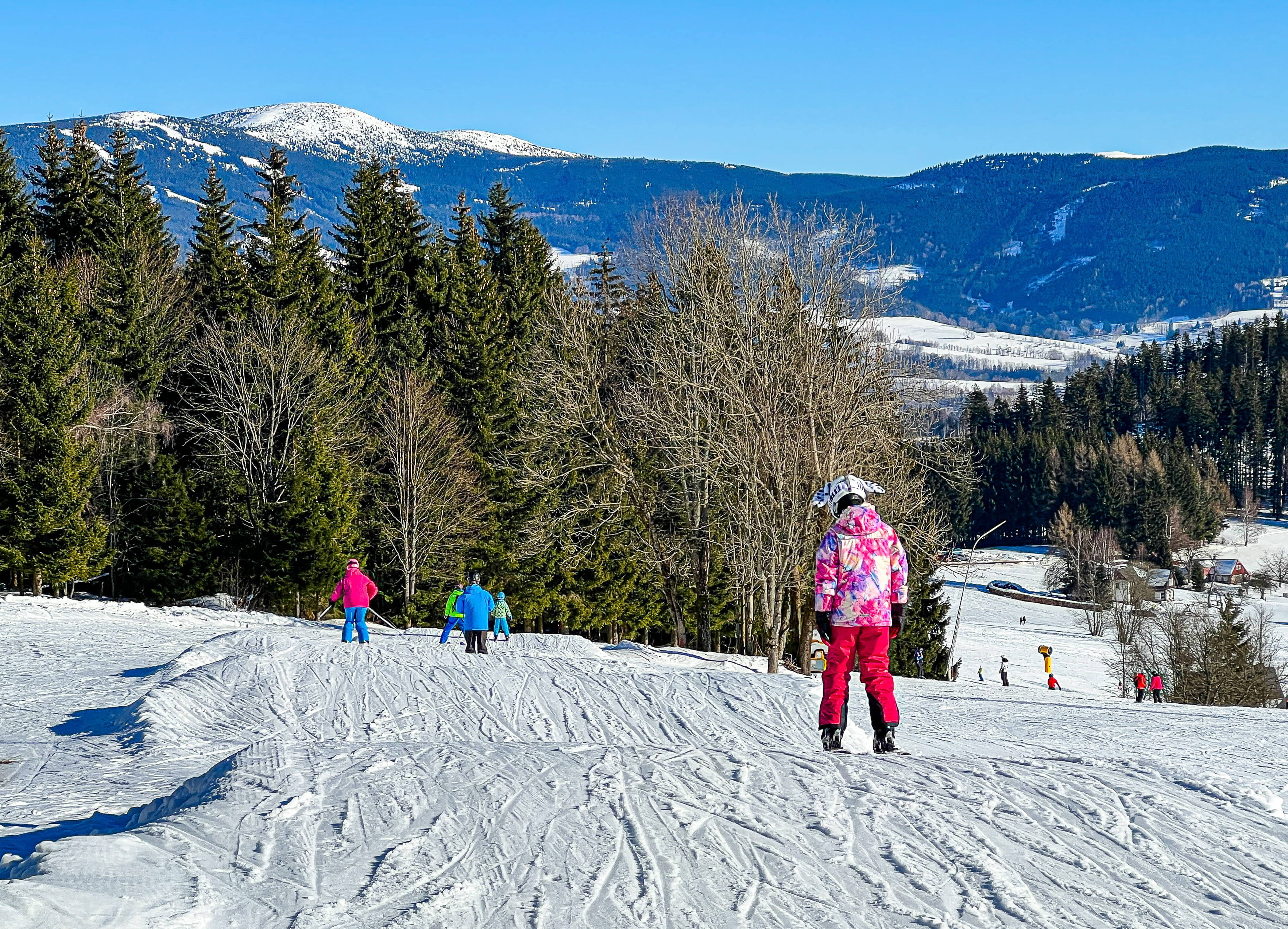 The family ski resort is located on the border of the western Krkonoše and Jizera Mountains, less than an hour from Liberec. The blue and red slopes are situated on the vast southern and really generous wide plains with all-day sun.