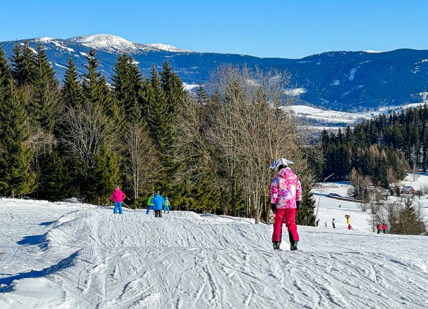 Come and enjoy skiing with your children or grandchildren. The resort is well equipped for the youngest beginner and intermediate skiers, while you as parents can enjoy skiing on long blue and red slopes.