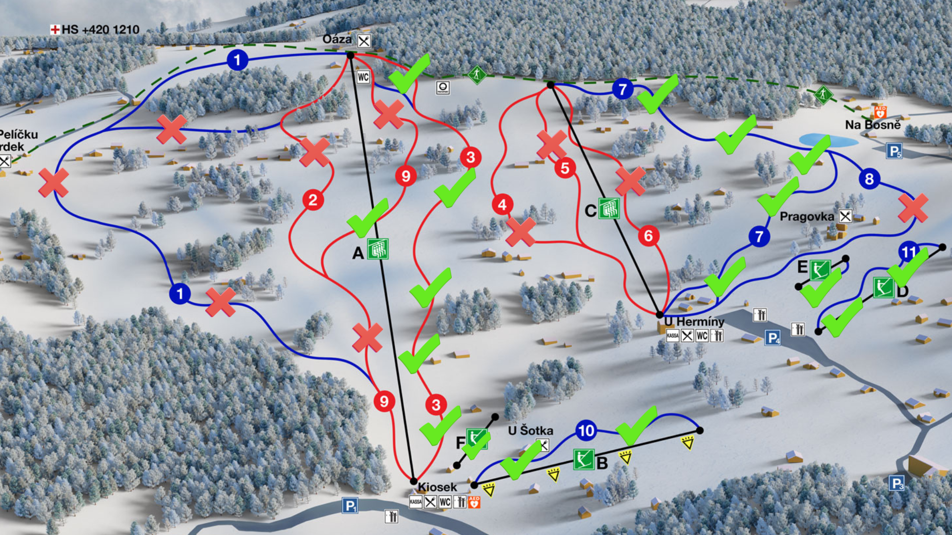 * Kid´s ski lift Pepíček (D) nearby parking nr. 4 and lift Johanka (B) nearby parking nr. 1.