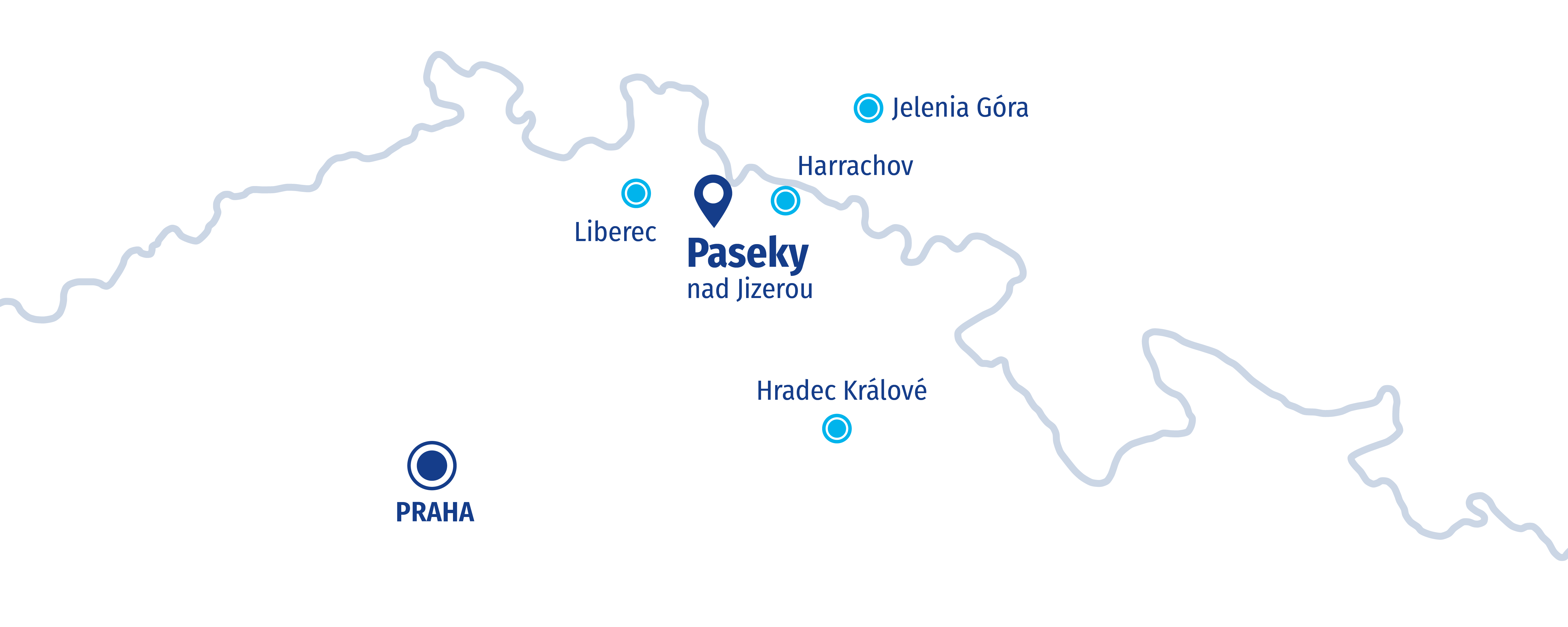 The main road: Turnov Jablonec nad Nisou Tanvald Desná direction to Harrachov, at the crossroad Mýto turn towards Rokytnici nad Jizerou Vilémov after a few kilometres turn right into the village Paseky nad Jizerou